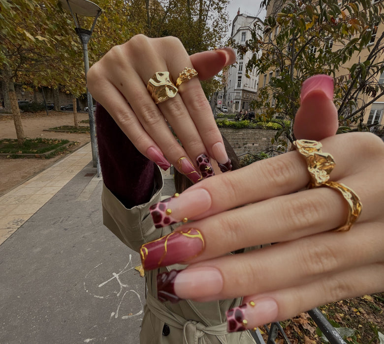 Dans cette collection, découvre nos modèles faits main au format stiletto, la forme la plus audacieuse de notre sélection. Effets chromés ou métallisés, fleurs sculptées en 3D, détails dorés, pierres et textures bijou : chaque set est pensé pour un look puissant et sans compromis. Parfait pour celles qui assument leur style jusqu’au bout des ongles, entre glam sauvage et mood “bad baddie”. Quand ton nail game doit clairement se faire remarquer.